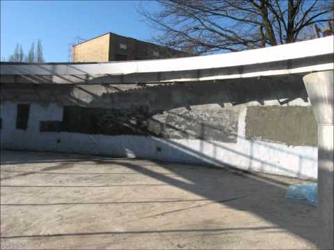 W pierwszej kolejności wykonano czyszczenie podłoża żelbetowego. Następnie wykonano gruntowanie żywicą epoksydową. Wykonano warstwę 6mm powłoki izolacyjnej z żywicy poliuretanowej